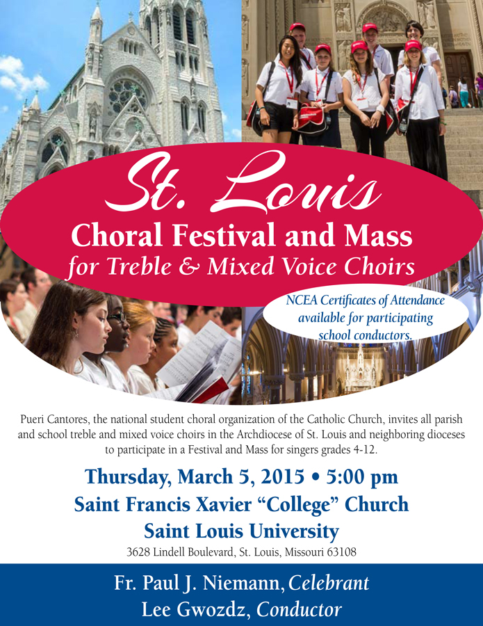 Please click on the image below to open the St. Louis Treble & Mixed Voice Festival brochure for more information including festival schedule, repertoire, and the registration form.